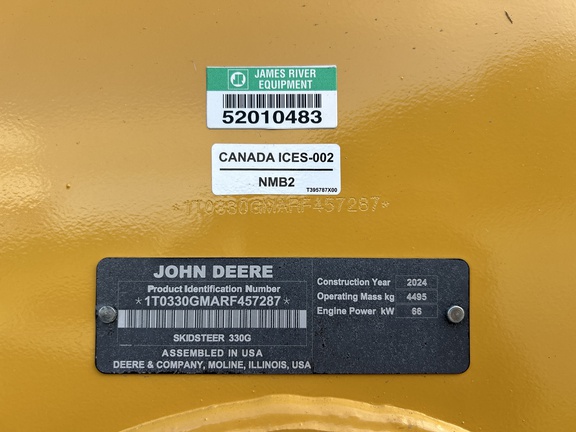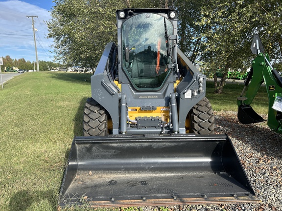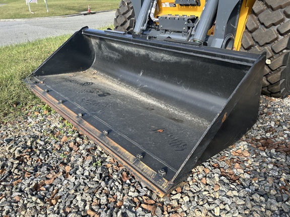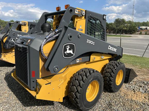 2024 330G Skid Steer with 2 speed, Hi Flo Hydraulics, Self leveling, ride control, LED lights and reversing fan. Cab with radio, air ride seat with heat. Heavy duty rear grille and 78" bucket with cutting edge. Sells with new warranty.